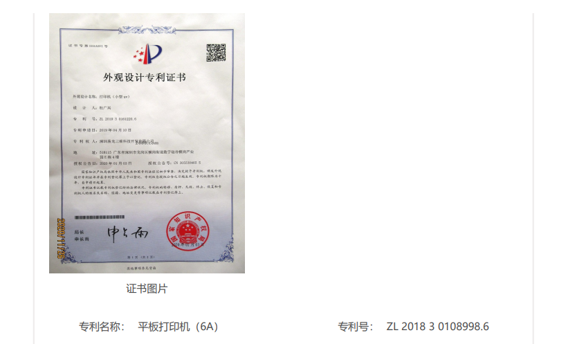 深圳易龍三維科技開發有限公司于2016年12月在深圳正式注冊,是昆明博易創科技開發有限公司全資控股公司。2003—2006年前身是昆明博易創研究所,2006年正式注冊昆明博易創科技開發有限公司。2003—2006年開創制相機或叫萬能打印機,后統一用詞萬能打印機、物體打印機。2009—2012年走上了快速發展階段,市場和名氣在國內迅速提高,2011年日本商家主動到中國來代理我們的產品,三個月后風靡全日本。2011年首家推出小型UV打印機,以后進入輝煌階段,在全國以昆明為總部的前提下陸續設置上海、深圳辦事處。